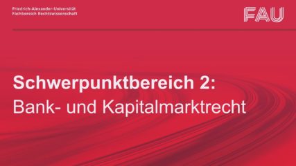 Für Studentinnen und Studenten, die sich für ein Schwerpunktbereichsstudium im Bank- und Kapitalmarktrecht interessieren, sowie für all diejenigen, die sich unter diesem neuen Schwerpunktbereich 2 vielleicht noch nichts genaues vorstellen können, hat der Lehrstuhl für Deutsches, Europäisches und Internationales Privat- und Wirtschaftsrecht ein kurzes Einführungs- und Orientierungsvideo erstellt.